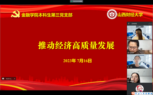 概要:继上次本科生第三党支部预备党员原红丹带领大家学习《坚持以人民为中心》后,在7月16日进行了第五章的学习,本章的主要内容是“推动经济高质量发展”,本章由本科生第三党支部预备党员吕琪带领大家学习,本科生第三党支部邱马玥主持并总结发言。