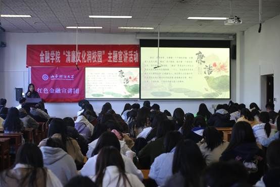 充分利用晋商文化资源,从历史遗存、文化经典、文化古迹中挖掘克己奉公、清廉自守的廉洁思想、廉政故事,挖掘晋商精神、金融文化,结合学科特点,提炼廉洁内容,通过师生喜闻乐见的活动内容和形式,让廉洁文化以“更生动、更鲜活、更有效”的方式传播,不断将传承红色基因、培育廉洁意识贯穿到大学生思想政治教育全过程。特别以“互联网”为平台,在学院公众号“金院融益通”开设“敬廉立德”专栏,截止目前累计专题17期,阅读量达2000多,营造了良好的清廉育人环境。