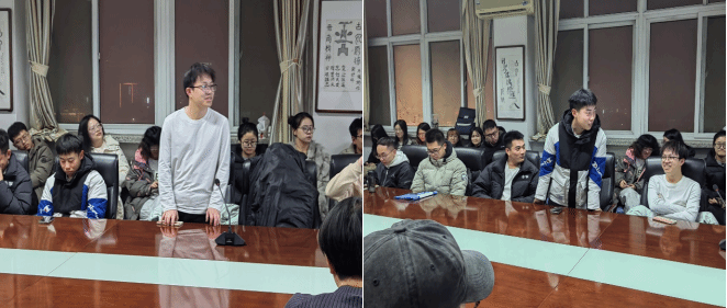 在认真听取汇报后,同学们经过深入思考,对该主题提出了一些自己的疑问。同学们的问题主要涉及在数据处理、解释变量的公式较为复杂等方面,希望做出进一步的解释。针对同学们的疑问,汇报小组进行了解答:在模型的构造过程中,作者的变量在命名时采用全称的方式,因而在公式的体现上会较为复杂,成员们已经在原来的基础上重新进行排版,对于正相关还是负相关问题主要以实证部分的结果分析为主;在制作异质性分析部分时,小组成员之间的进行了讨论,完成思想层面的碰撞,切实体会到了团队作业中合作的重要性。