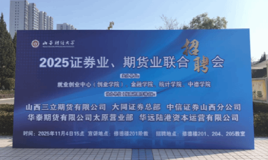 联合统计学院、中德学院共同举办了2025证券业、期货业联合招聘会。山西三立期货有限公司、大同证券总部、中信证券山西分公司、华泰期货有限公司太原营业部、华远陆港资本运营有限公司5家业内优质企业齐聚现场。色情小说
