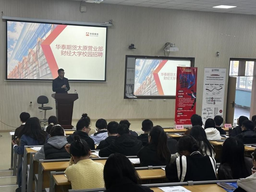 华泰期货有限公司太原营业部负责人,围绕期货行业新趋势,解读了公司作为华泰证券全资子公司,在衍生品服务、产业风险管理等领域的核心竞争力。针对风险管理顾问、交易支持、市场开发等岗位,负责人详细介绍了任职要求与职业发展路径,表达了对兼具专业知识与创新思维的复合型人才的迫切需求。