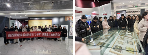 第二部分,1月20日,同学们来到山西证券投资教育基地,杨宝川经理在宏观上对市场进行了解析,从经济变化、时代背景等角度让同学们更加了解当今形势,了解经济周期,更加明确对未来的规划。随后,工作人员带领同学们对基地进行了参观,同学们看到了证券发展史、山西金融的发展史,以及现代金融的发展等。最后,工作人员为同学们讲解了山西金融史上重要的历史人物如“雷履泰”“乔贵发”等,让同学们对山西金融学有更深一步了解,激发同学们的学习兴趣。