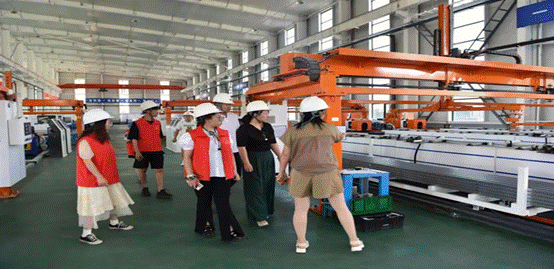 实践团来到格林贝斯新能源装备制造有限公司钢结构车间,参观了解了整个生产过程,通过聆听工作人员的详细介绍,成员们了解到金属结构制造、新兴能源技术研发等,感叹数字经济带给人们生产生活的便利。