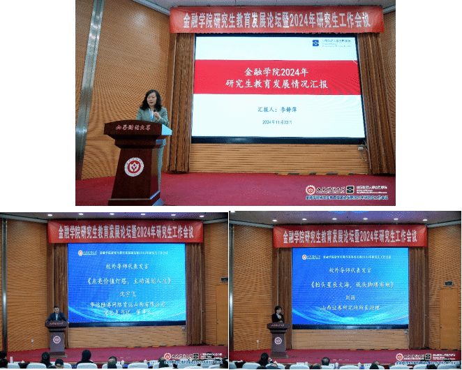 祁敬宇教授、山西三立期货有限公司监事史晋生、山西银行山银研究院院长谢振山、中国人寿保险股份有限公司山西省分公司原副总经理窦力鸣、太保寿险山西分公司党委宣传部部长、市场企划部总经理刘晓光以及中国平安人寿保险股份有限责任公司山西分公司部门经理任原光分别在各分会场做专题报告。各分会场围绕金融业务发展、高等教育优化、校企合作、红色金融史、寿险业前景展望和科技赋能保险业等主题进行了深入的探讨和交流。校外导师展示了他们对当前宏观经济形势、金融领域发展现状和研究生就业等方面的见解,并与校内师生进行了互动交流。