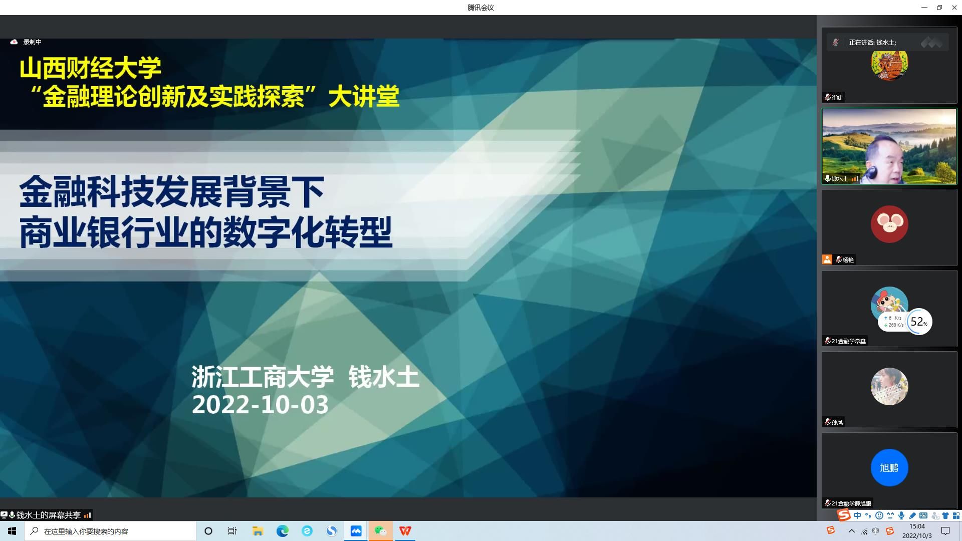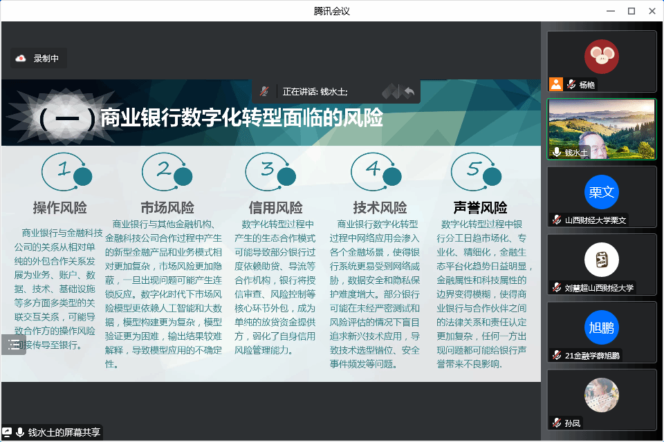 师生作了题为《金融科技发展背景下商业银行的数字化转型》的讲座,因疫情原因,讲座采用腾讯会议线上方式举行。学院教职工、部分其他学院的教师及研究生一百余人聆听了本场讲座。