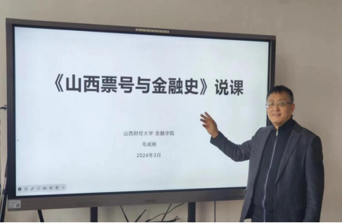 按照周周315的安排本周起由申报2024年省级一流课程的教师进行说课。本周说课的是银行管理教研室副主任毛成刚老师,他说课的内容是《山西票号与金融史》,主要从课程设置、教学团队、教材分析、教学方法、教学设计、教学特色和创新这六个方面进行说课。说课内容呈现了本课程较强的中国特色和山西地方特色,在本校孔祥毅、黄鉴辉等老一辈取得的丰富资料整理和研究成果基础上,新一代教师又对教学材料的内容进行了全面的整合,自编了以山西票号与近代金融发展为主要学习内容的讲义。目前核心教学团队由毛成刚、孙长青、张亚兰三位老师组成,教学团队积累了教学资料,采取了启发式、研讨式等教学方法。今后五年将围绕OBE教学理念,培养学生形成金融史学习和研究能力。