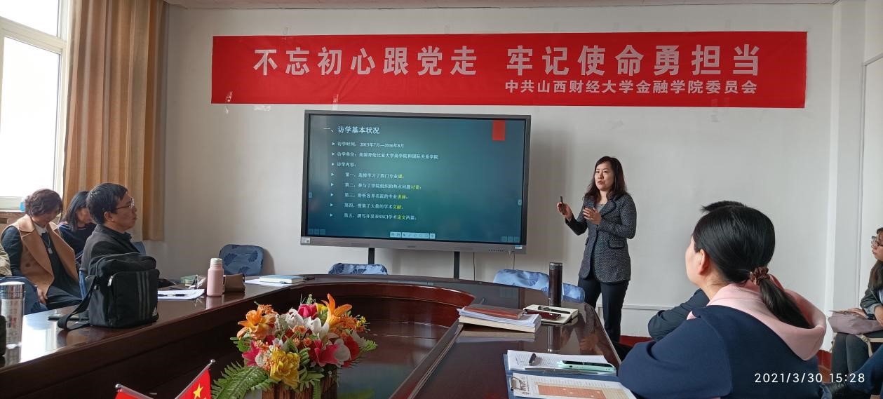 会上,王晓婷副教授和李静萍教授就自己的访学经历跟大家做了交流。首先,王晓婷老师分享其赴捷克西里西亚大学的访学经验,主要从三个方面介绍了自己的访学经历。首先,她简要地介绍了西里西亚大学的概况;其次,介绍了访学期间的主要工作,分别是教学活动、科研活动、部门活动;最后,分享了在西里西亚大学的访学收获,不仅提高了英语听说读能力和英文论文的写作能力,并且在教学方法和科研能力方面收获颇多。